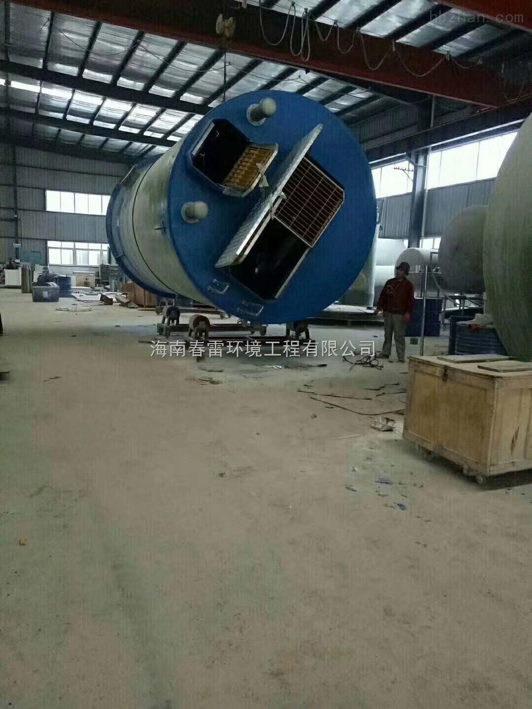 PPS预制泵站是由外壳筒体采用的材质如强化玻璃钢(GRP)或聚乙烯树酯(PE)自动化铸造而成。预制泵站内部由水泵、管路、阀门、仪表、控制设备、楼梯以及其他用户所需要的附件都可以由制造厂成套提供,并安装完毕后出厂,如下图所示。它甚至可以带维修间和格栅,是一种使用方便,质量可靠,土建工作少,成本较低的新型一体化泵站设备。